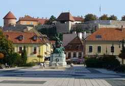 From the top of the castle hill we look down to the major sights of this historic town : a Turkish minaret ( praying tower ), a Serbian orthodox church, a giant cathedral, an old university building and many others. Crossing the fort we have a pleasant walk to go down to the square by the cathedral and to see carefully designed urban spaces mingled with fragments from the Middle Ages. During our visit we shouldn’t miss to wonder at the frescoed ceiling of the old library hall,- in case of having young legs – to climb up the minaret or to enjoy lunch in the Valley of the Beautiful Lady accompanied by a good glass of ’’ Bull’s Blood”, a full-bodied red wine of the surrounding vineyards.
